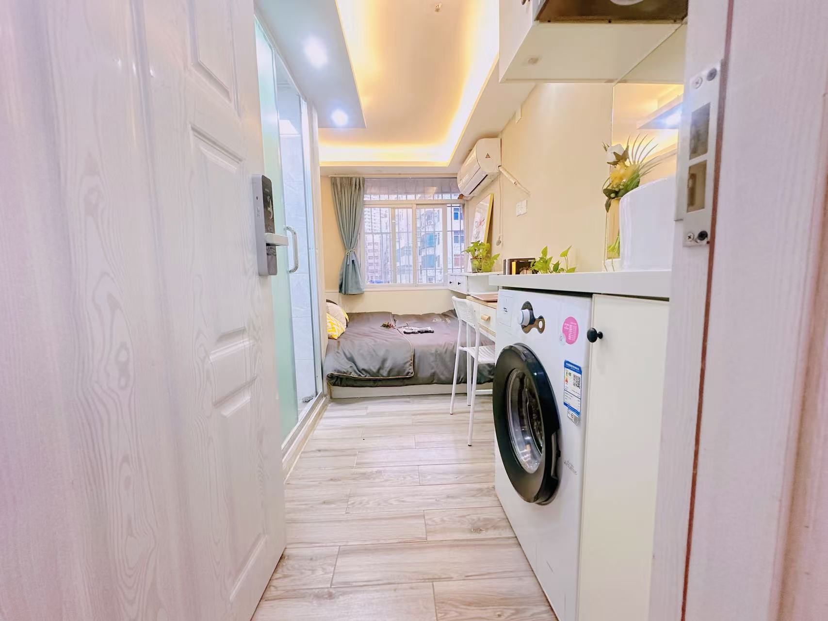 该房间家具家电齐全,可拎包入住,开放式厨房,独立卫浴,可满足日常生活所需,距离7号线沙尾地铁站B口300米左右,近主干道公交站,通达车公庙、购物公园、福田口岸,全楼监控 + 24 小时管家 + 定期保洁,园区化管理提升安全性与舒适度,步行可达便利店、餐馆、菜市场、福田体育馆;近红树林生态公园跑步绿道