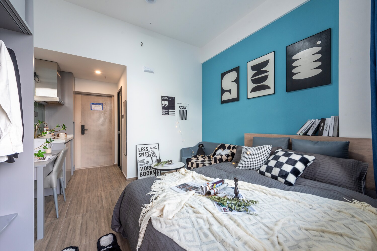 独立的阳台房户型,尽情享受阳关的沐浴,独立卫浴、开放式厨房,满足生活所需,专业物业团队24小时管理,楼栋进出采用指纹刷门开锁、房间采用智能门锁,免除丢钥匙的烦恼