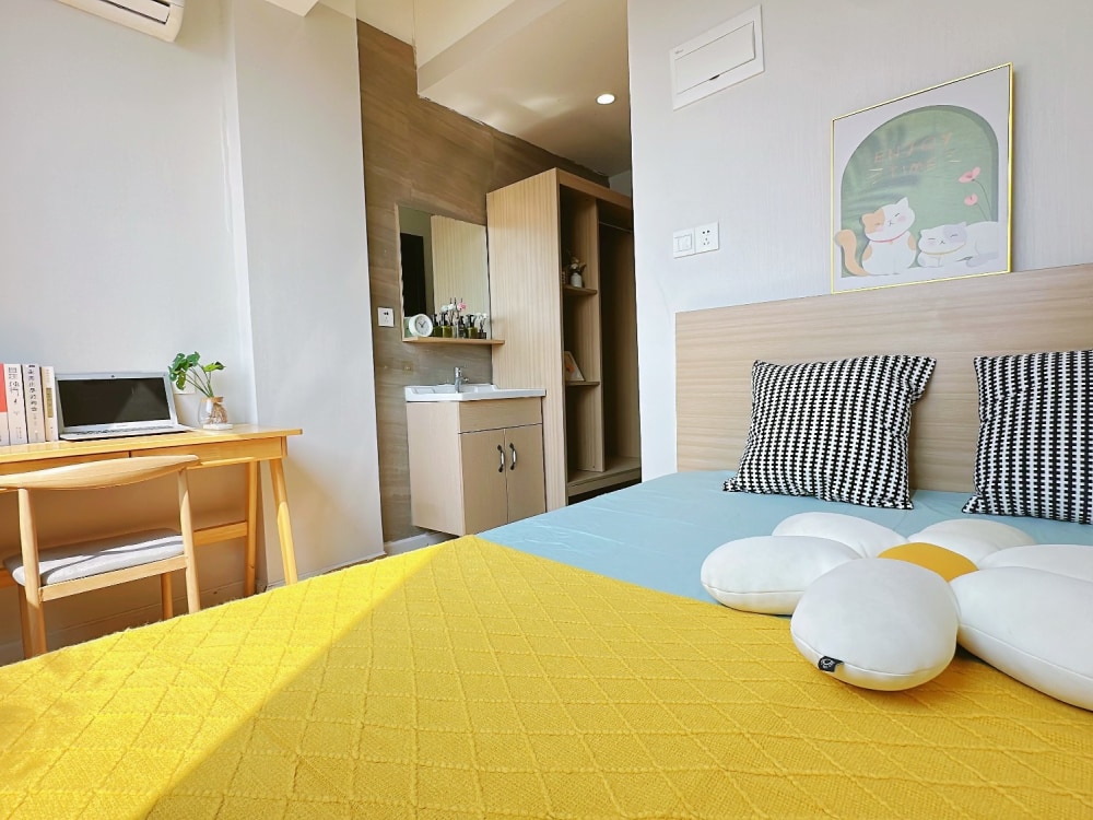 房间精装修、户型多样、干净整洁、简约、小清新风格随心选. 安心住房、24小时监控、智能门锁、门禁出入。 家具家电齐全、网络、空调、冰箱、洗衣机、热水器、床、柜子、桌椅等一应俱全、拎包入住。