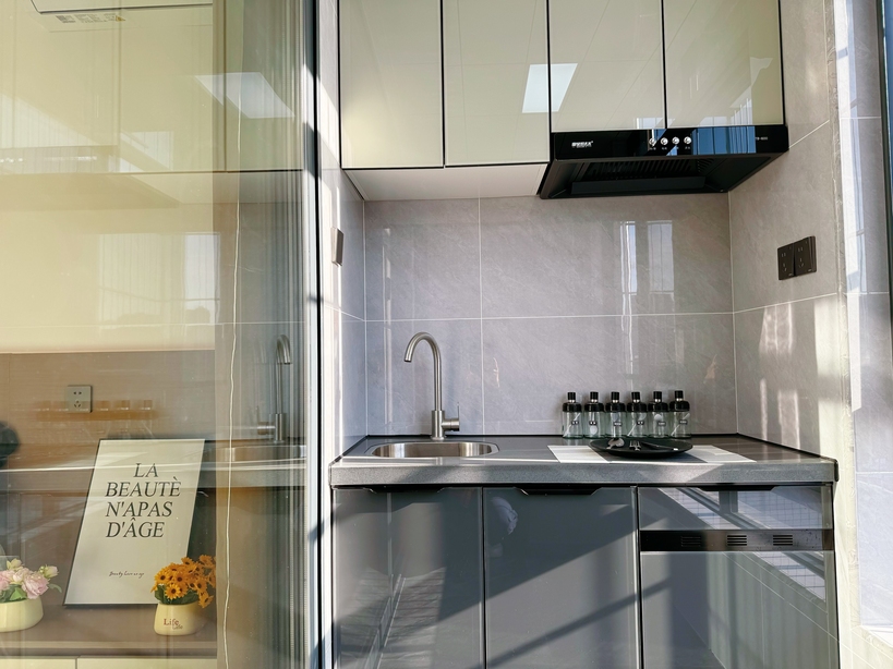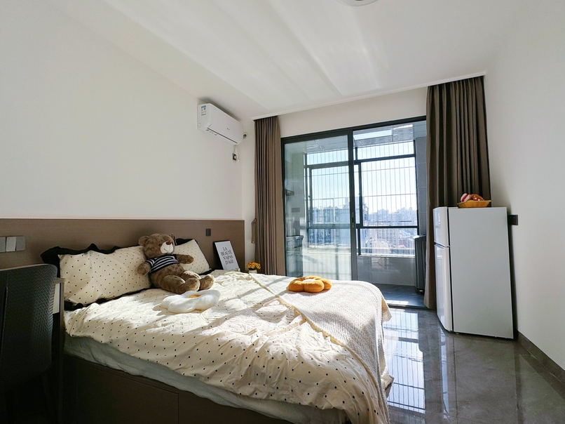 精致开间,独立卫浴、干湿分离,开放式厨房,满足生活所需,独立阳台,落地大窗,采光通透,视野开阔,家具家电齐全