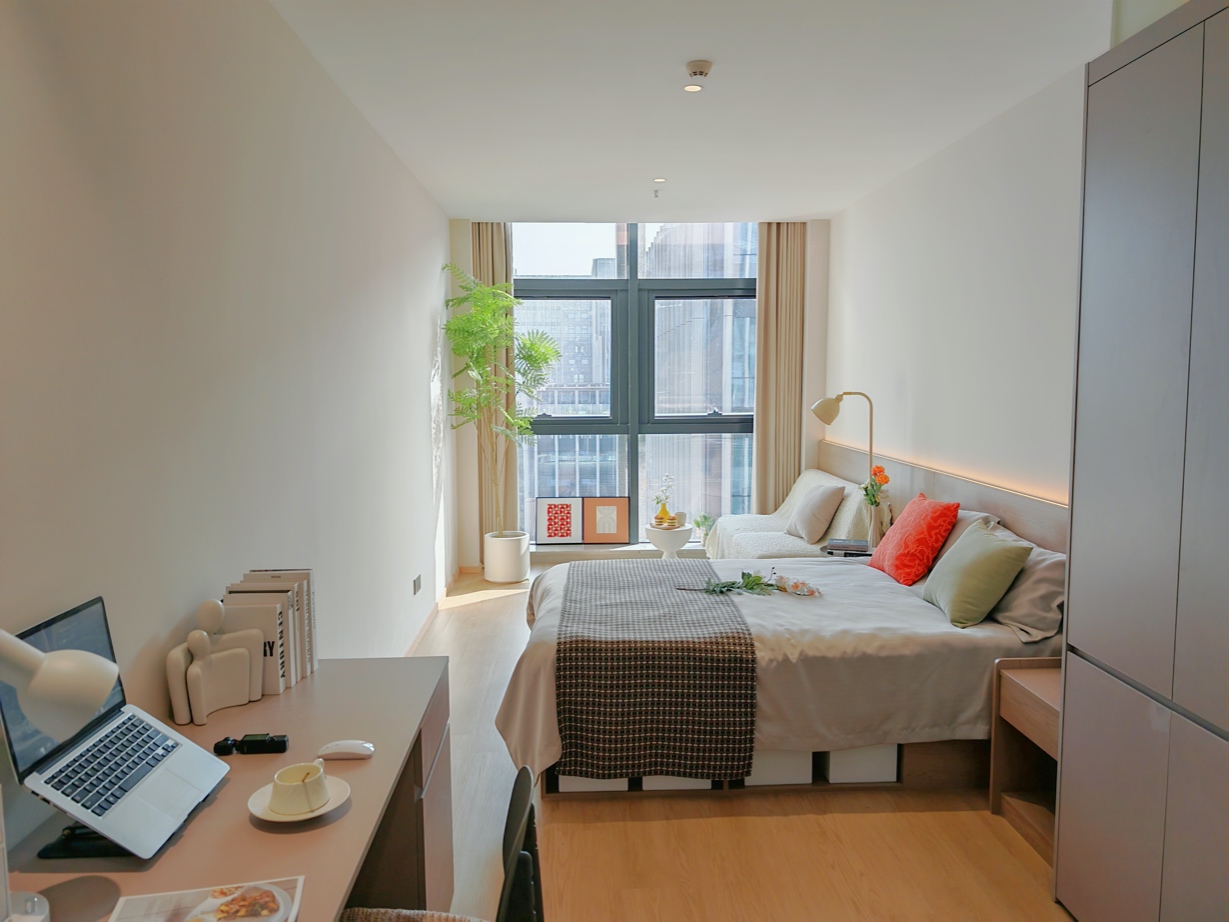 房间配备家具:品牌家具,配置冰箱,洗衣机,热水器,淋浴设备,床,席梦思,衣橱,桌椅椅子沙发等
