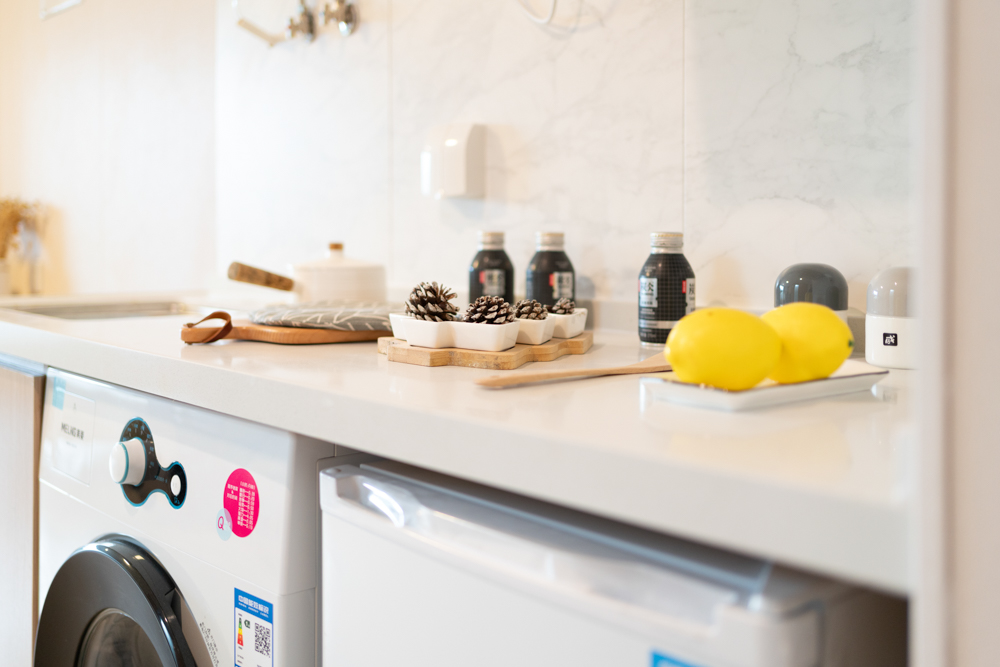 家具家电配套:1.5米床及床垫、实木衣柜、实木书架、实木桌椅、床头柜、热水器、油烟机、空调、冰箱、滚筒洗衣机、沙发