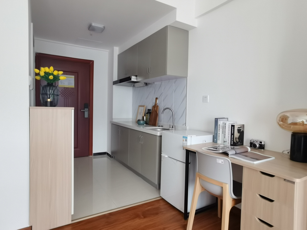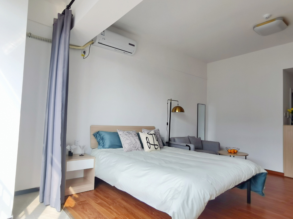 精致方正的单间户型,独立卫浴,开放式厨房可以做饭。房间家具家电齐全,采光优越,通风良好,