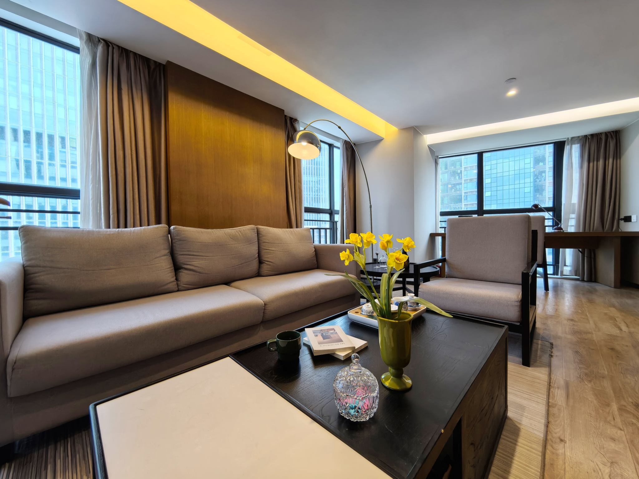 ■品质家具家电,配套服务齐全 ■独立卫浴,独立衣帽间,随心收纳 房间户型方正,空间温馨舒适,无遮挡观赏窗,尽享城市夜景。