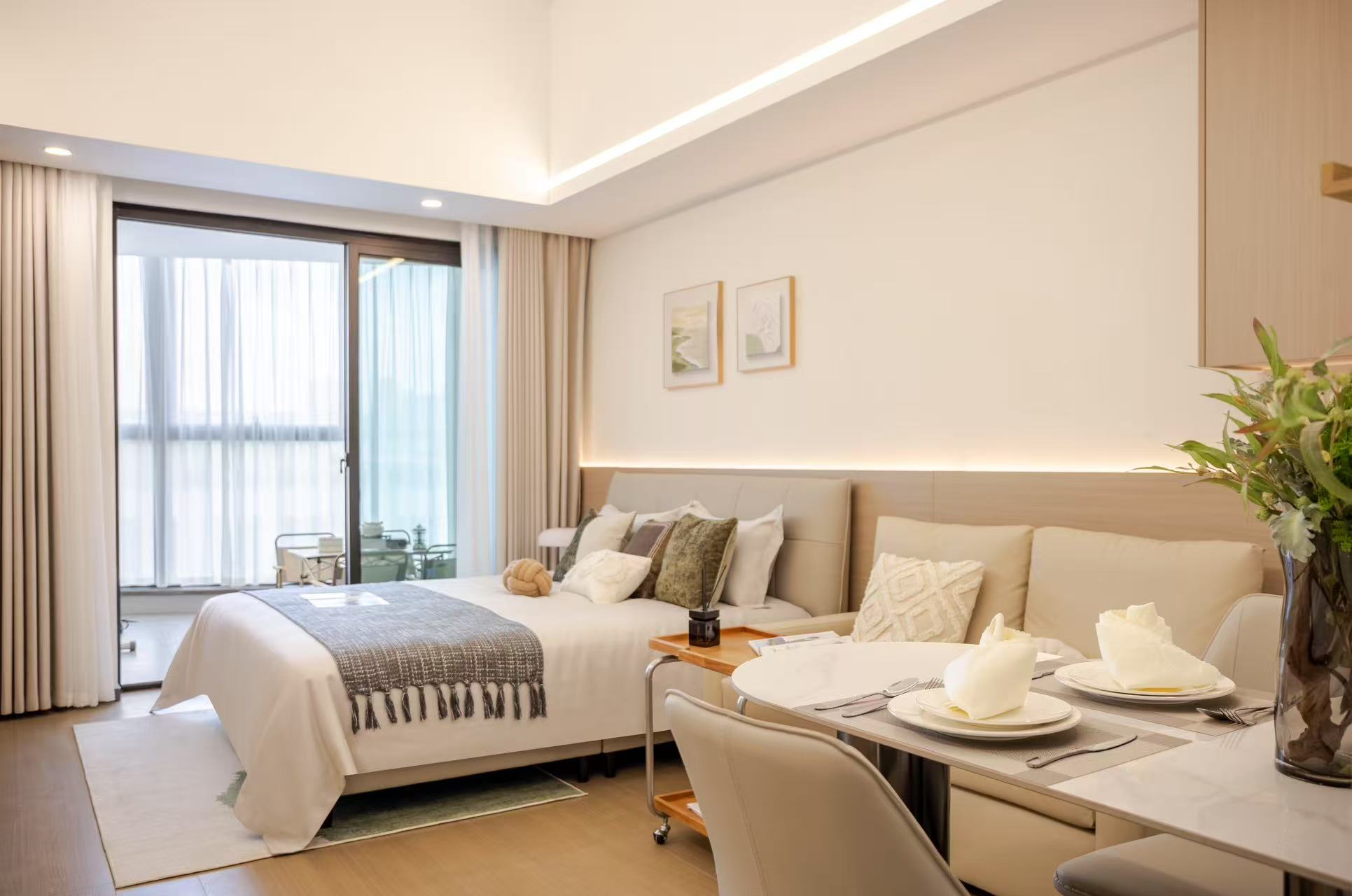 整租,全景落地窗,采光好,收纳空间大,可做饭,独立卫浴,干湿分离 【高端电器配置】:室内高端电器一应俱全,独立空调营造宜人温度,美的洗烘一体洗衣机、冰箱贴心相伴,入户光纤网络让您畅游信息世界,抽油烟机、热水器、电子马桶满足生活所需; 【家具配置】:家具配置精心定制,嵌入式衣柜典雅实用,升降式晾衣架便