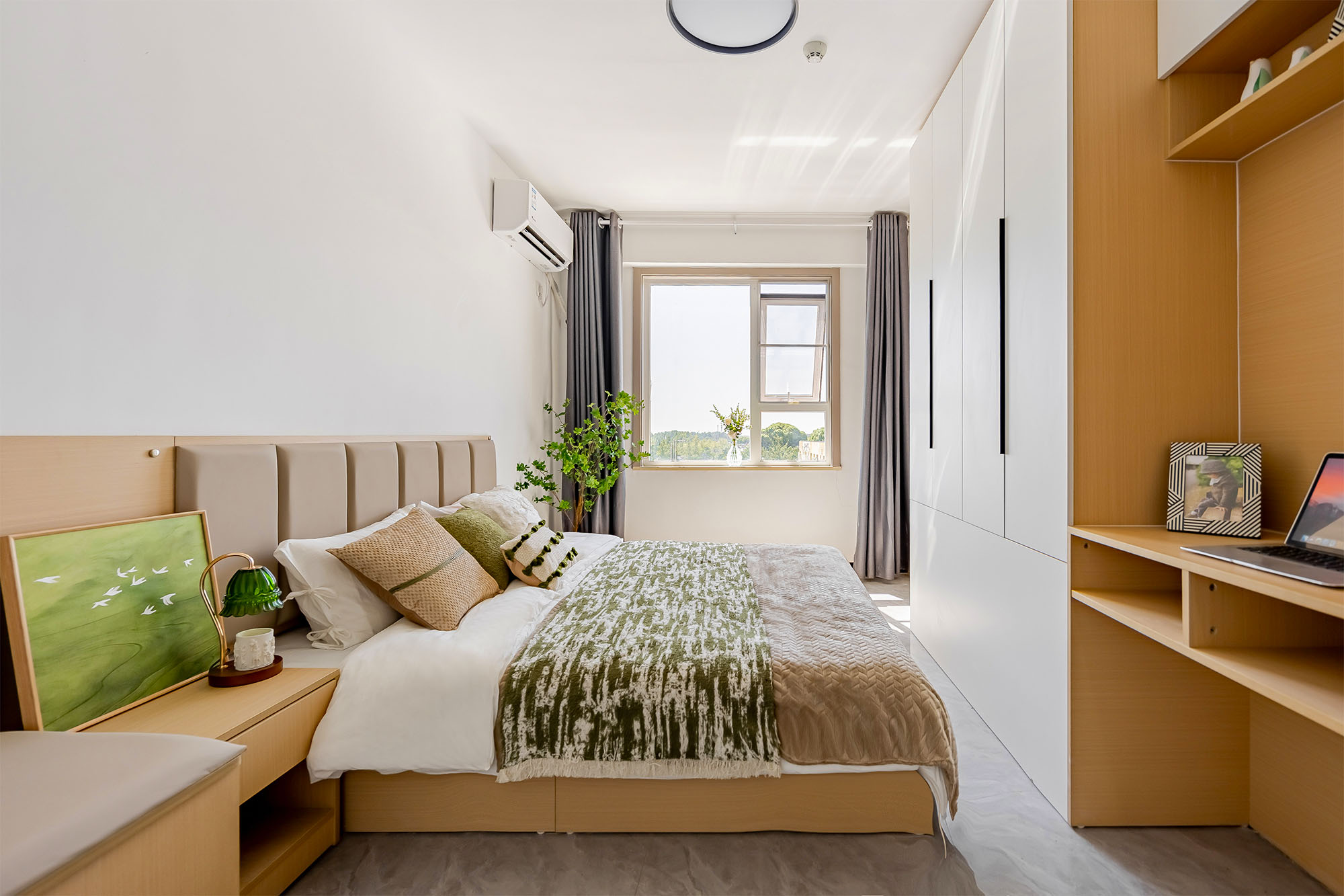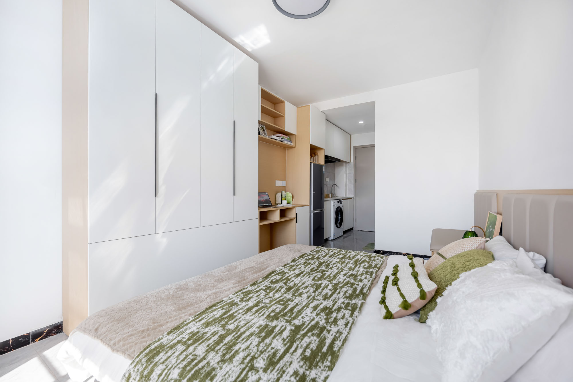 社区型公寓,精装品牌家居家电配套,停车方便,为您提供舒适便捷的居住体验,南、北朝向大窗采光好,定制家具,布局合理空间大,落地大衣柜储物空间大,订制厨房生活顺心无忧,密码锁。