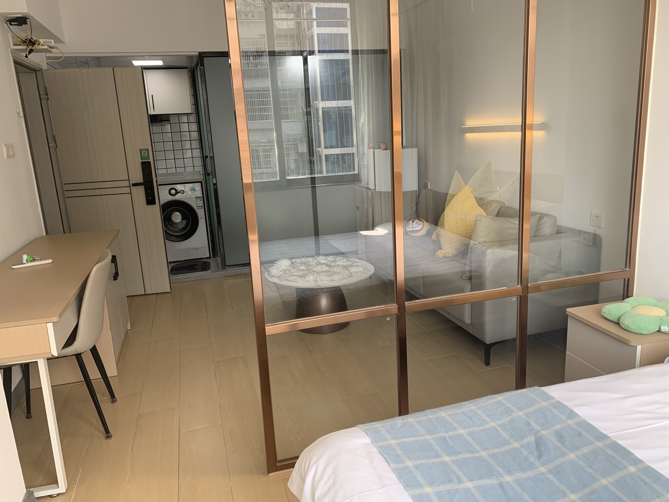 精致一房一厅,独立卫浴、开放式厨房,满足生活所需 ,原木色装饰低调实用 ,通透大窗,视野开阔