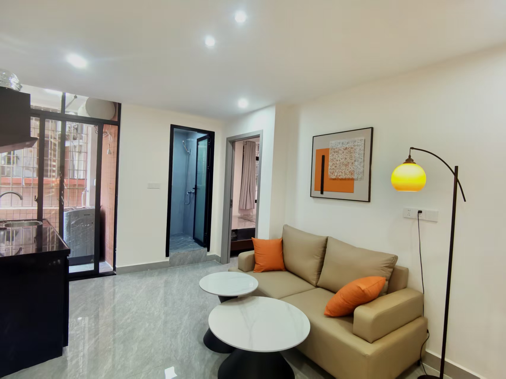 标准一房一厅,独立阳台,独立卫浴、开放式厨房,满足生活所需 ,原木色装饰低调实用 ,通透大窗,视野开阔
