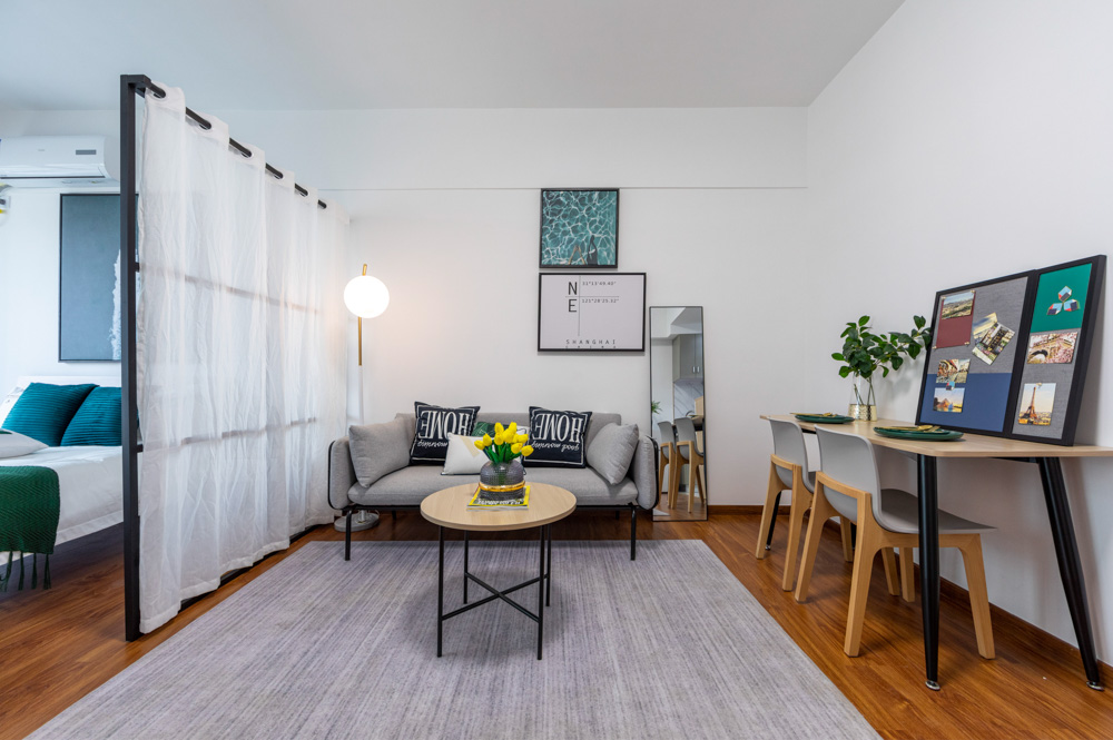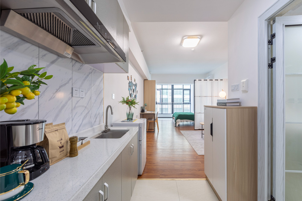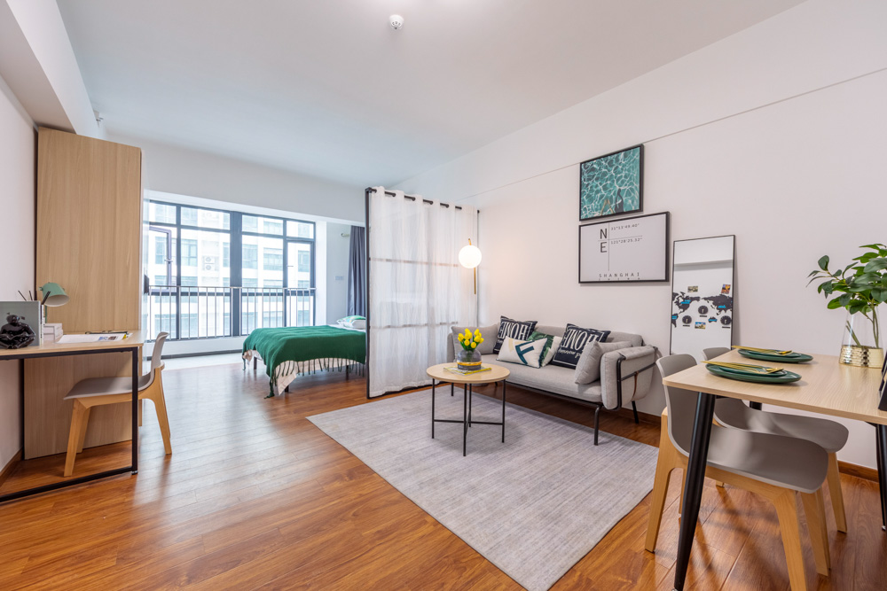 精致方正的单间户型,独立卫浴,开放式厨房可以做饭。房间家具家电齐全,采光优越,通风良好