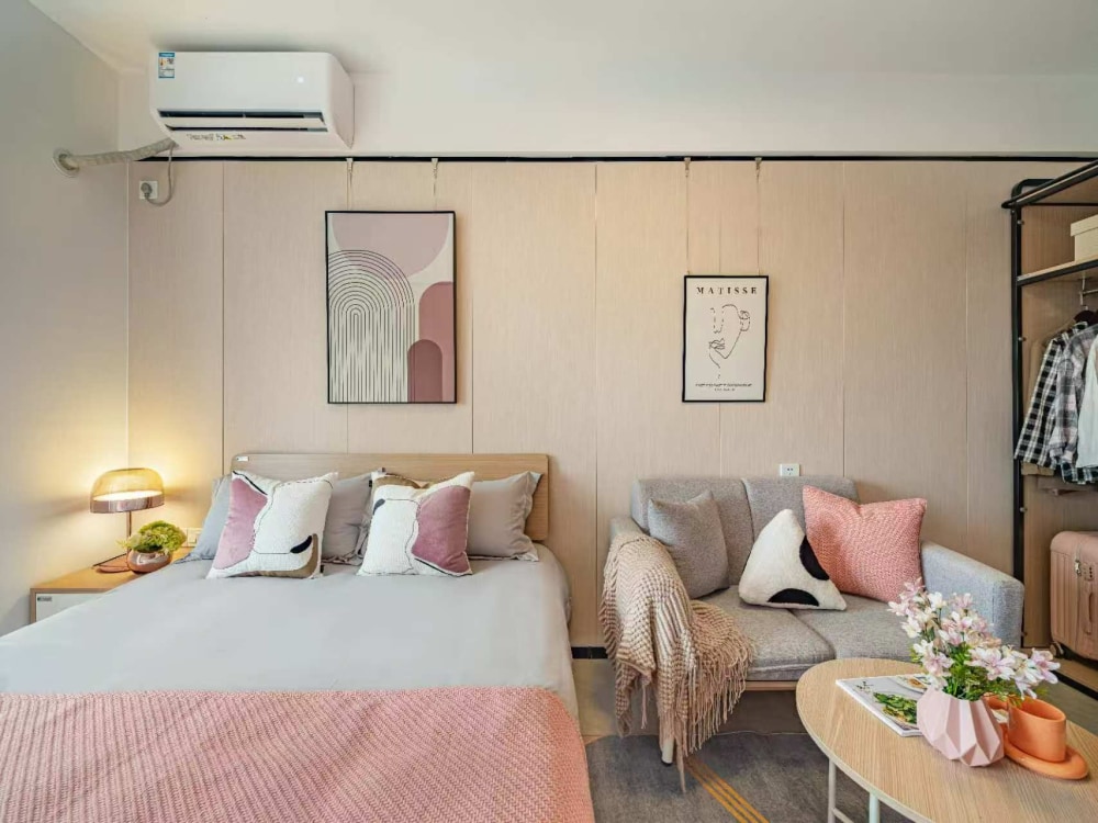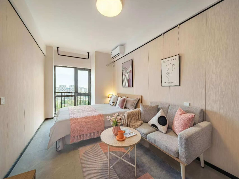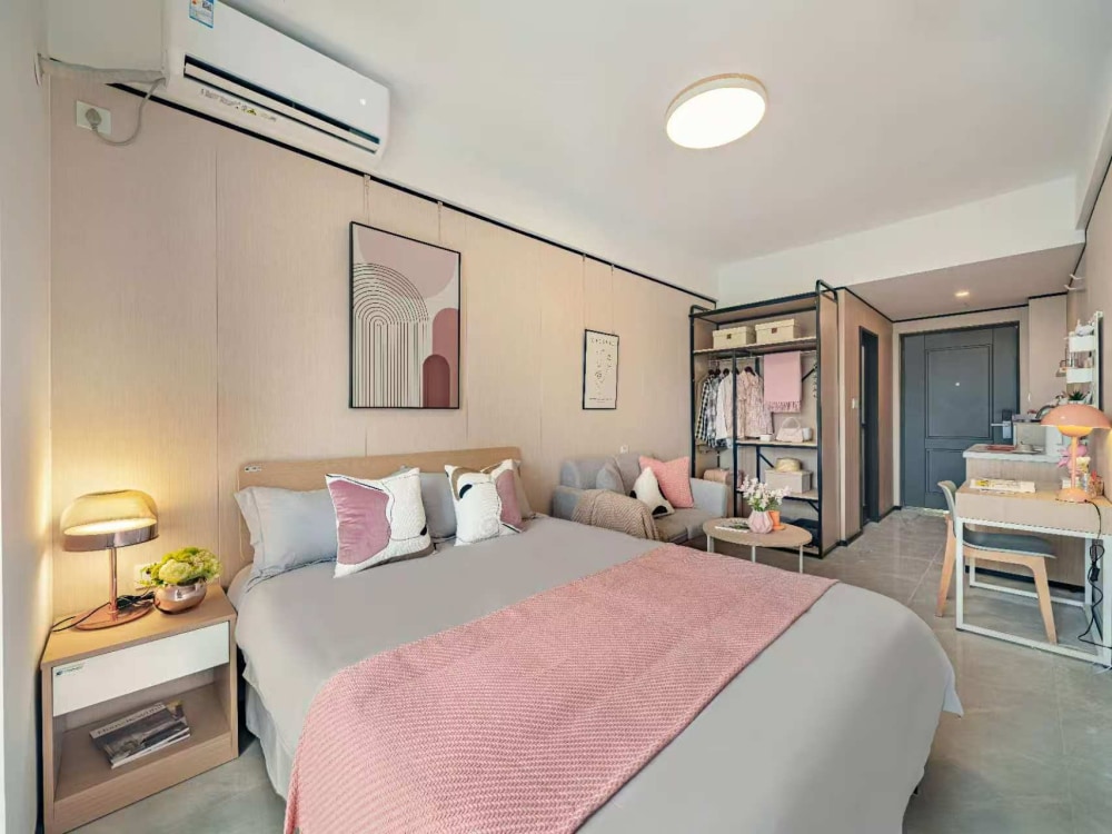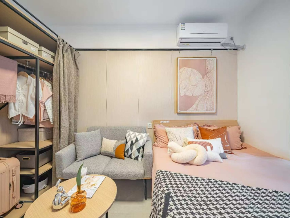 冠寓江北天街店是龙湖江北天街上盖,近地铁3号线星火路地铁站,楼下就是天街商场和铂金岛街区配套非常完善,城市社区,生活便利。房间户型方正,采光通透,房间设施齐全,带独立卫生间,落地大窗,通透感强;