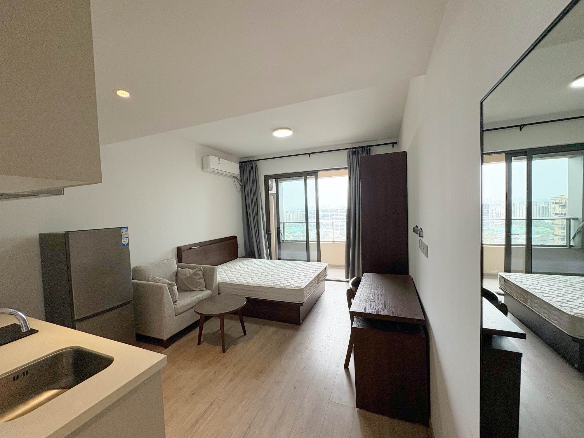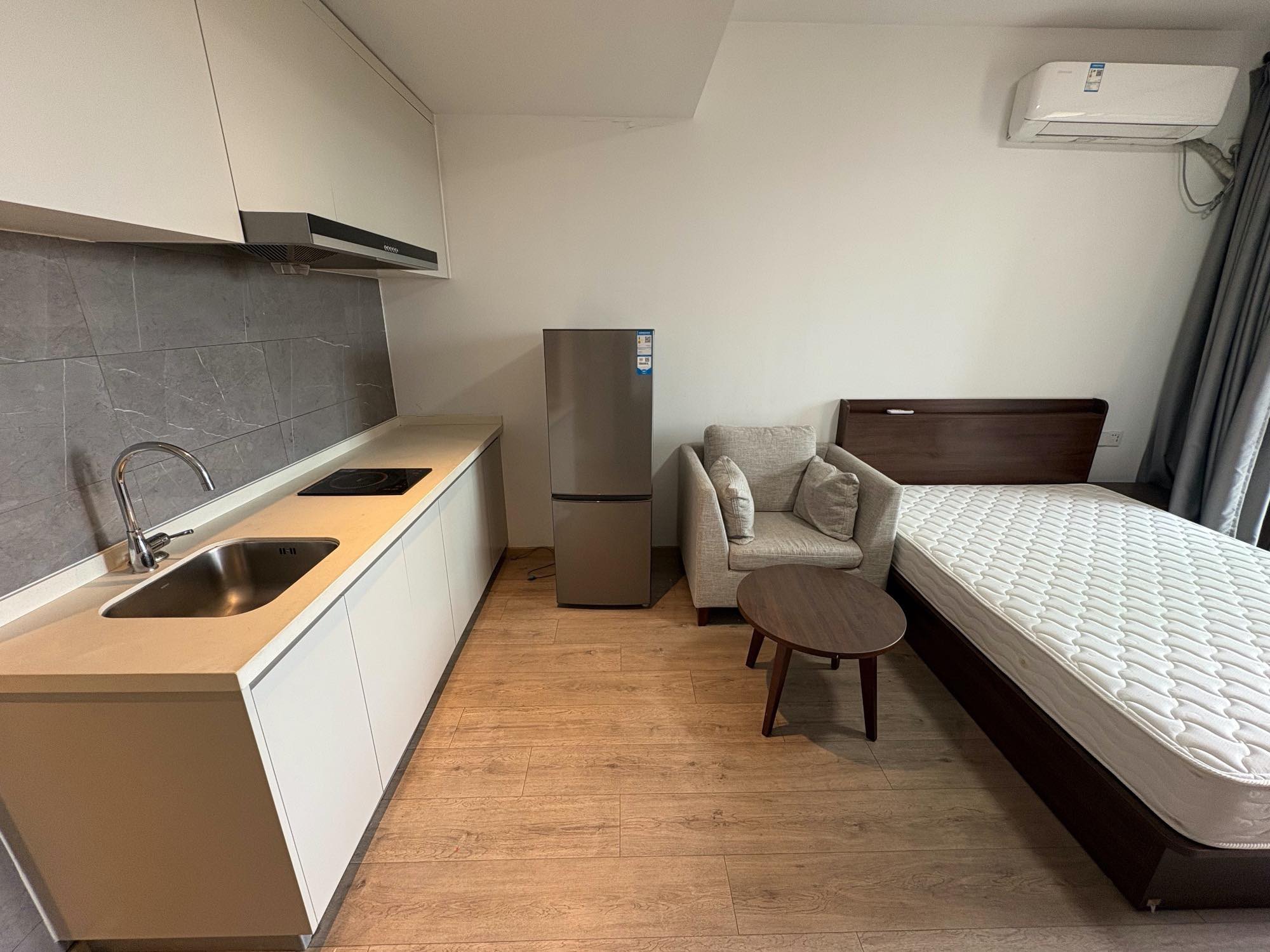 洗衣机,冰箱,空调,家具家电齐全,网络到户,独门独卫;物业 24 小时守候,门禁、梯禁、智能密码锁三重守护,保安保洁维修等到位。